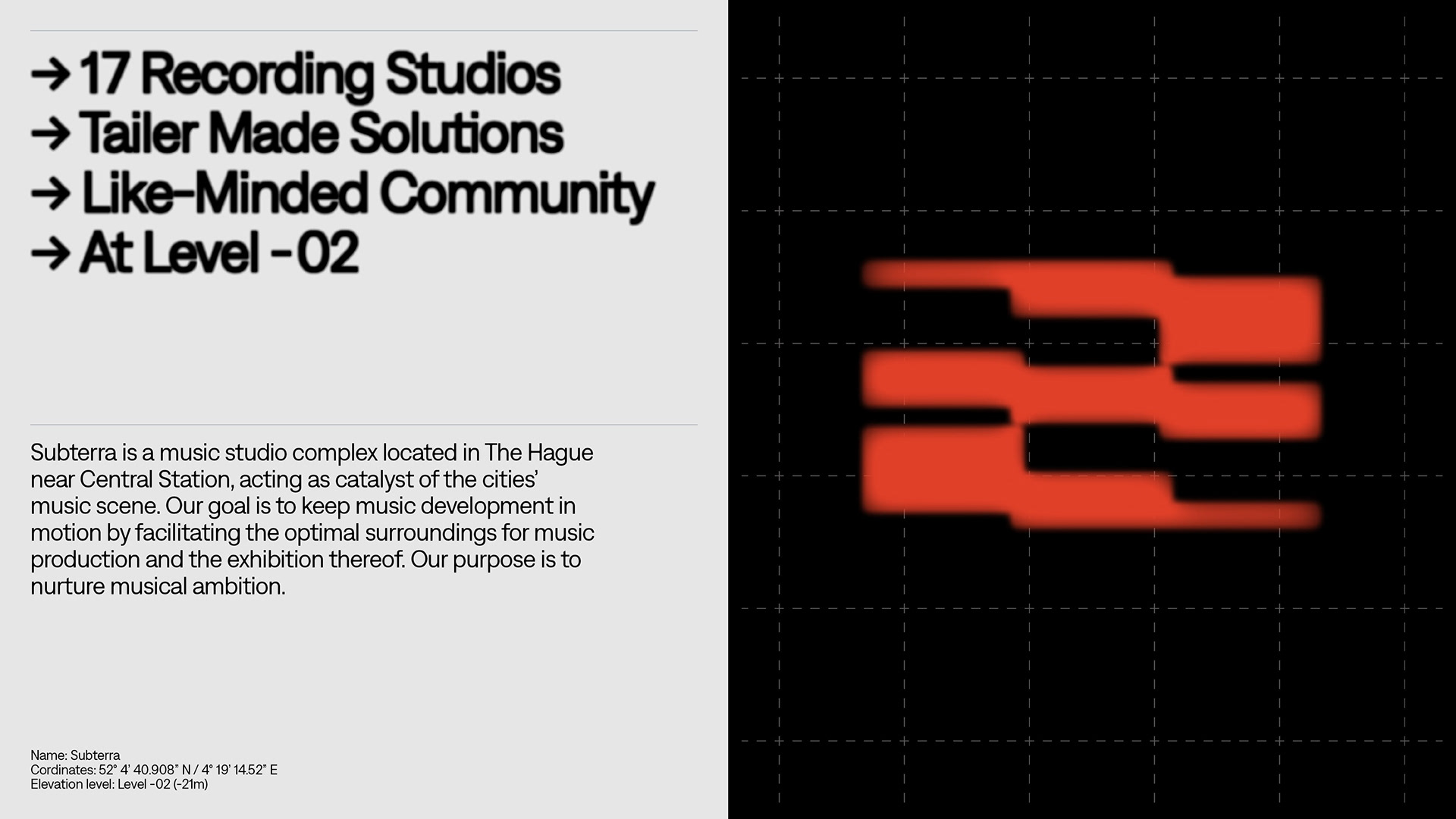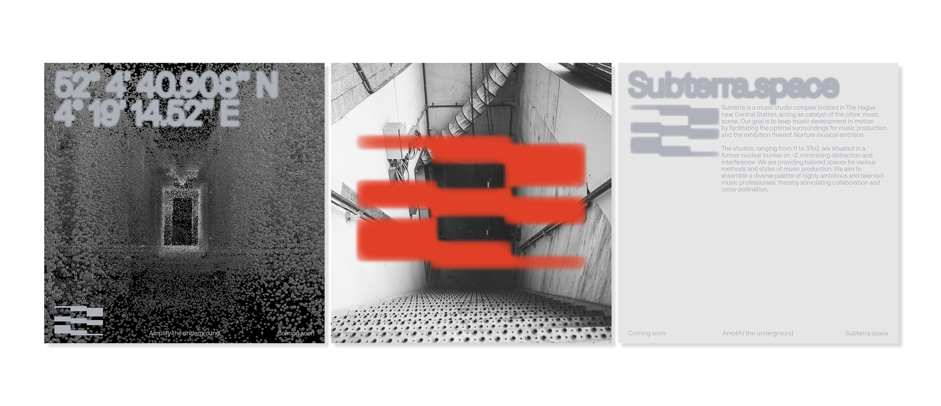 Amplify the underground. An identity for a music studio complex located in a former nuclear bunker.
